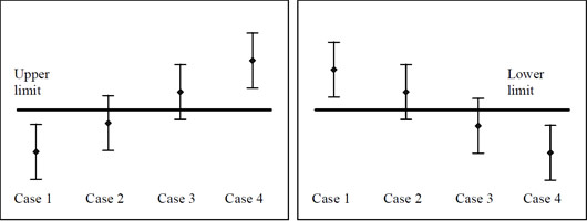 When a measurement result, including extended uncertainty, is compared with the specification interval (upper and lower specification limit) 4 cases can be defined (Figure 1):